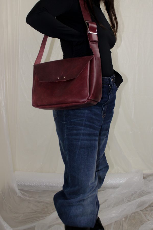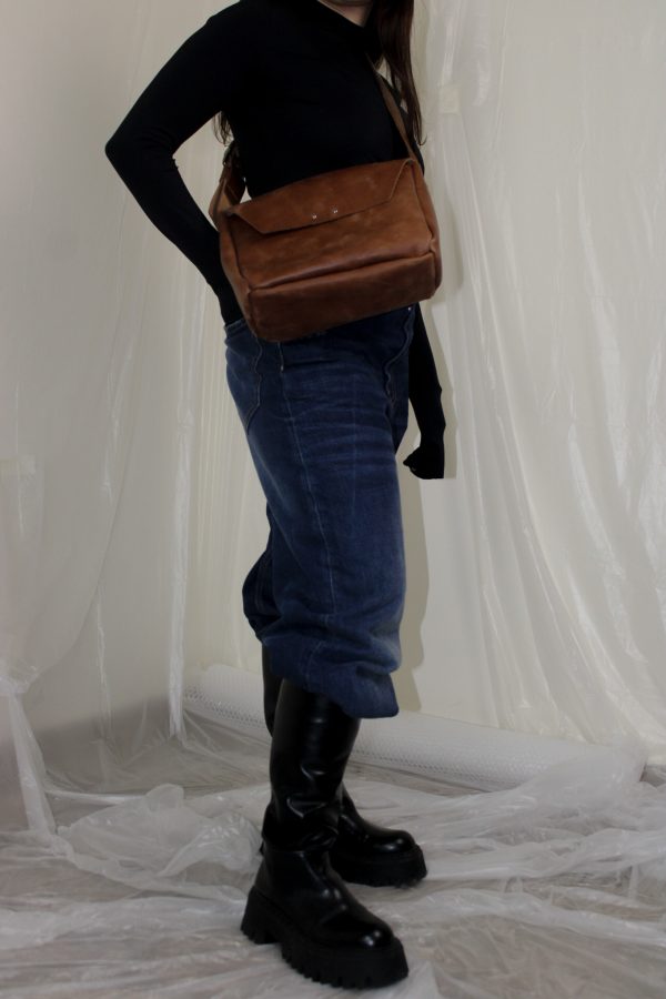 Χειροποίητη δερμάτινη τσάντα ώμου .